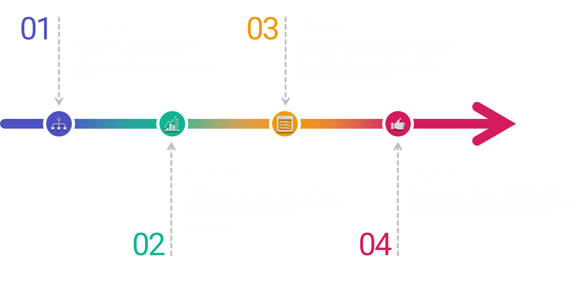 También establecimos tiempos a diferentes plazos para dichas mediciones (diarias, semanales, mensuales, etc.), conforme fuimos viendo que las metas se cumplían, íbamos confirmando que el resultado final se lograría, de lo contrario, haríamos los ajustes necesarios (03).